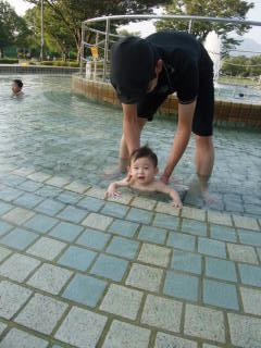 坊ちゃんにバタ足を見せてくれたり
